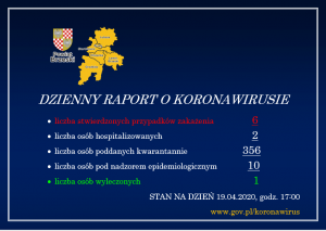 Szósty przypadek zakażenia SARS-CoV-2 w powiecie. Aktualny raport – 18.04.2020