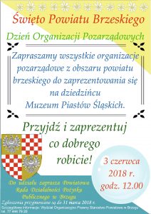 Zapraszamy wszystkie organizacje pozarządowe z obszaru powiatu brzeskiego do zaprezentowania się na dziedzińcu Zamku Piastów Śląskich w Brzegu podczas podczas Dnia Organizacji Pozarządowych, który odbędzie się w ramach Święta Powiatu Brzeskiego 3 czerwca. Do udziału zaprasza Powiatowa Rada Działalności Pożytku Publicznego w Brzegu. Zgłoszenia przyjmowane są do 31 marca. Szczegółowe informacje: Wydział Organizacyjno-Prawny Starostwa…