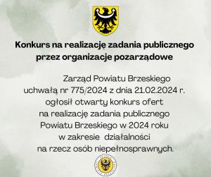 czytaj więcejUCHWAŁA NR 768/2024 ZARZĄDU POWIATU BRZESKIEGO z dnia 7 lutego 2024 r. w sprawie ogłoszenia konkursu dla organizacji pozarządowych na realizację zadania publicznego z zakresu ochrony i promocji zdrowia Na podstawie art. 13 ust. 1 i art. 15 ust. 2a ustawy z dnia 24 kwietnia 2003 r. o działalności pożytku publicznego i o wolontariacie…