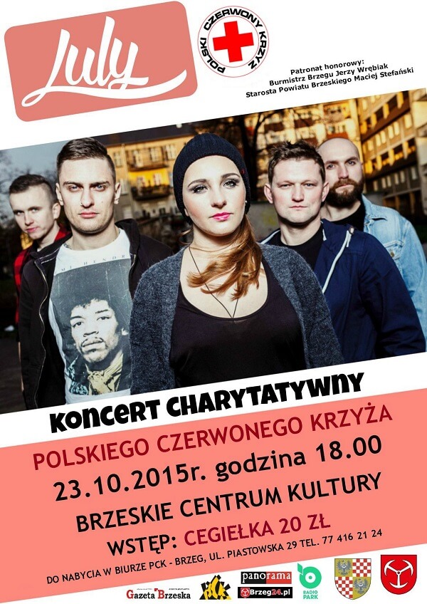 W dniu 23.10.2015 roku o godzinie 18ºº w Brzeskim Centrum Kultury w Brzegu organizujemy Koncert Charytatywny. Swoją obecnością zaszczyci nas brzeski zespół LULY uczestnik programu Must Be the Music oraz półfinalista programu Mam talent.