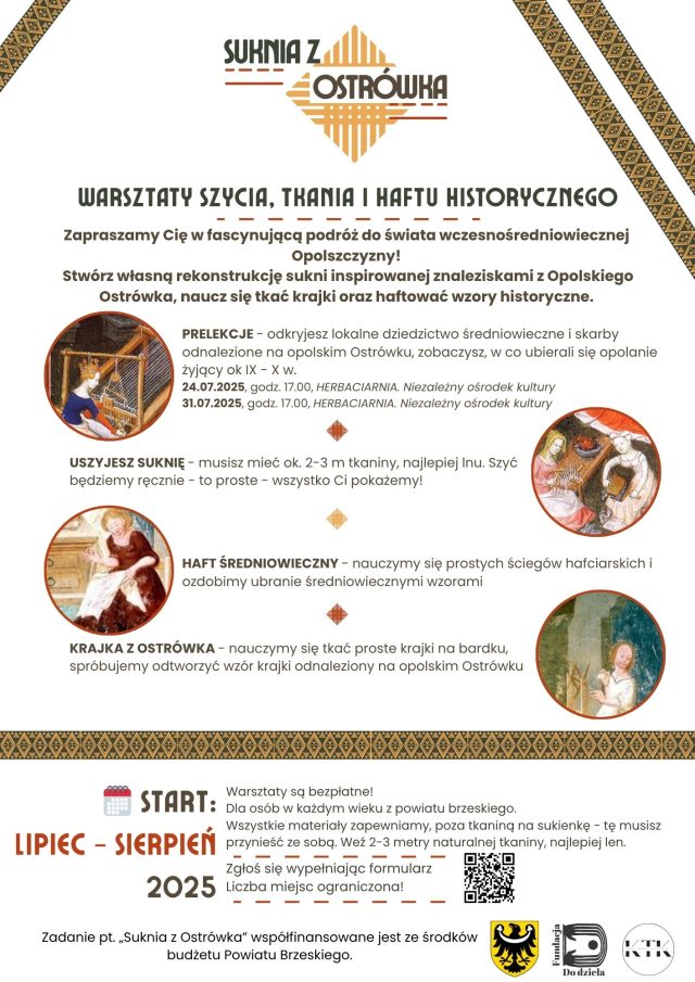 Informacje z terminami będą się pojawiać sukcesywnie na stronie: https://fundacjadodziela.pl/suknia-z-ostrowka-wakacyjne-warsztaty-w-brzegu/