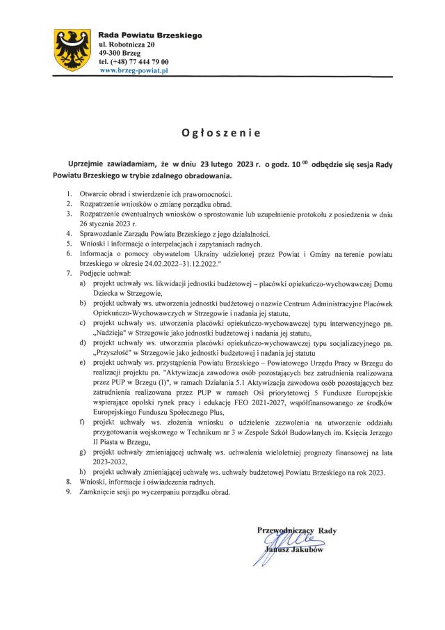 UCHWAŁA NR 632/2023 ZARZĄDU POWIATU BRZESKIEGO z dnia 1 marca 2023 r. w sprawie ogłoszenia konkursu na realizację zadania publicznego przez organizacje pozarządowe Na podstawie art. 13 ust. 1 i art. 15 ust. 2a ustawy z dnia 24 kwietnia 2003 r. o działalności pożytku publicznego i o wolontariacie (Dz. U. z 2022 r.…
