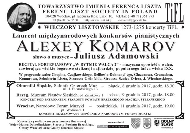 9 grudnia br. mury Zamku Piastów Śląskich wypełniła muzyczna opowieść o walcu w formie recitalu fortepianowego „W rytmie walca 2”. Mieszkańcy powiatu brzeskiego wysłuchali walców Chopina, Czajkowskiego, Delibes’a-Dohnanyi’ego, Glazunowa, Granadosa, Komarowa, Schuberta-Liszta, Straussa-Grünfelda, Straussa-Szulca Evlera czy J. Wieniawskiego. Repertuarowi muzycznemu towarzyszył komentarz słowny przygotowany przez Juliusza Adamowskiego – pianistę, pedagoga, prelegenta i działacza muzycznego. Honorowy…