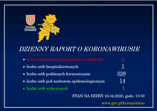 Szósty przypadek zakażenia SARS-CoV-2 w powiecie. Aktualny raport – 18.04.2020
