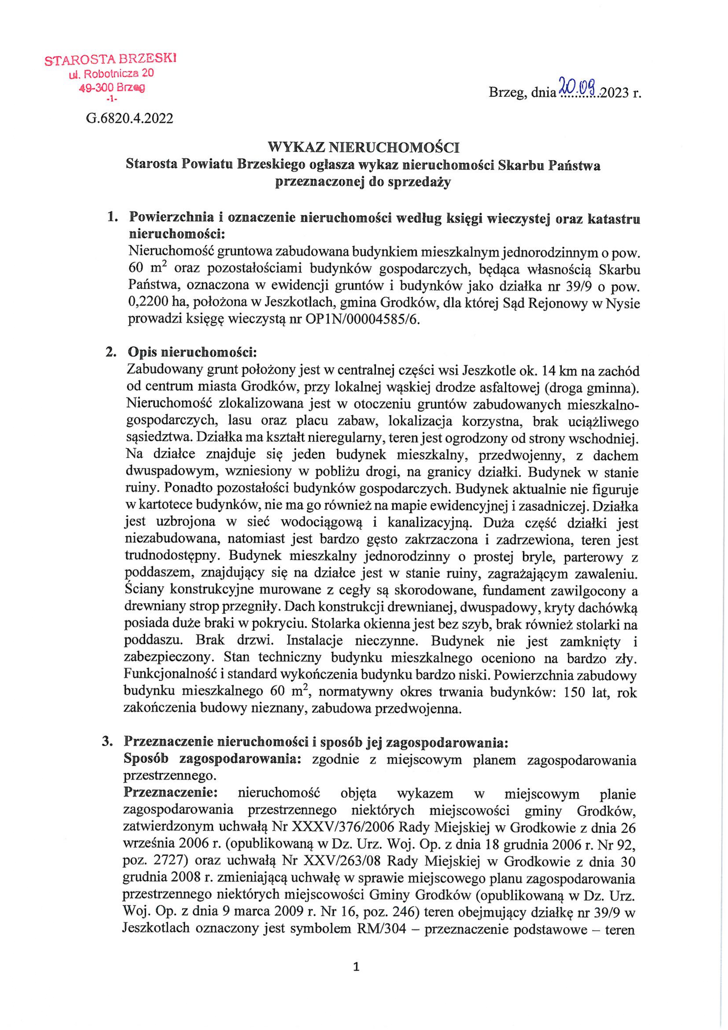 Wykaz nieruchomości Skarbu Państwa do sprzedaży dz. nr 39-9 Jeszkotle_page-0001