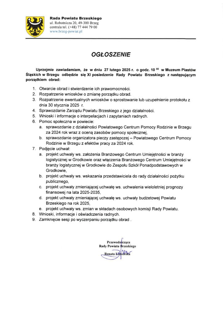 Zbliża się kolejna sesja Rady Powiatu Brzeskiego.